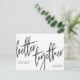 Cartões salve a data minimalistas prontos para serem personalizados! Este design apresenta "melhor juntos" em letras manuais com seus nomes à esquerda e sua data à direita. Sinta-se à vontade para entrar em contato comigo através do botão abaixo se precisar de assistência com o modelo ou se tiver solicitações de personalização! Veja o link de coleção nesta página ou visite nossa loja para obter mais designs.