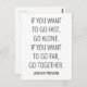 Se você quer ir rápido, vá sozinho. Se você quer ir longe, vá junto - Proverbo Africano Inspiracional Isto não significa que devemos sempre ir sozinhos ou juntos. Algumas coisas podem ser melhor feitas sozinhas, mas para outras...devemos ficar juntos!