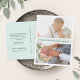 Obrigado de fotos elegante e moderno de casamento, você postcards apresenta duas fotos bisecadas por uma faixa verde pastel seaglass com sua saudação e/ou nomes personalizados. Adicione uma mensagem pré-impressa personalizada de obrigados ao verso ou exclua o texto de amostra se usar uma mensagem manuscrita.