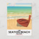 Seaton Beach, Devon, retro England viagens vintage de uma cadeira de baralho em um feriado de trem de praia arenoso.