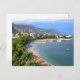 Experimente o charme do Mediterrâneo com este cartão postal vibrante com uma cena costeira espantosa. Palmeiras, praias arenosas, e uma marina arrebentada contra montanhas majestosas, capturam a essência de uma perfeita fuga à beira-mar. Ideal para compartilhar ou coletar.