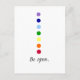 Design de cartão postal minimalista encantador com uma simples mensagem "Seja aberto" gráfica Chakra e personalizável. Excelente para instrutores de ioga, terapeutas de massagem e outros que praticam bem-estar holístico e meditação.