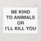 Cartão Postal Seja gentil com os animais ou eu te Matar
