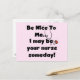 Enfermeira T-shirts, canecas, cartões, autocolantes, botões, bolsas e outros presentes amamentados com um estetoscópio e texto que diz "Seja gentil comigo.. Talvez um dia seja sua enfermeira!".