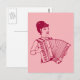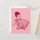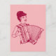Uma imagem retrô de uma senhora bem vestida tocando um acordeão.