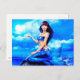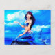 Um cartão de fantasia com uma bela sereia bubel sentada numa rocha e espalhada por uma magia.