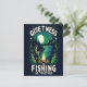 Uma ilustração gráfica mostrando um homem pescando à noite com uma lua de cheio no céu. O texto diz Silêncio e pesca Juntos.
