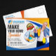 Procurando um cartão postal profissional e atraente para promover seus serviços de limpeza? Não olhe mais! Este modelo personalizável é perfeito para limpeza de casas, serviços de empregadas, limpeza de entrada/saída e muito mais. Edite facilmente o texto e as imagens para corresponder à sua marca e adicione seu próprio logotipo e informações de contato. O layout moderno e a vibrante design seguramente chamam a atenção, enquanto as informações claras e concisas realçam seus principais serviços e ofertas.