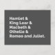 "Hamlet e Rei Lear e Macbeth e Othello e Romeu e Julieta" Shakespeare toca em cinza. Literatura vitoriana.