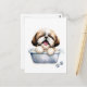 Uma bela ilustração com aquarela de cão de um feliz cão Shih Tzu numa banheira. Excelente para amantes de cães.