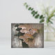 Esta carta postada apresenta cogumelos shiitake crescendo em um tronco na floresta.
