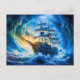 Cartão Postal Ship in Glowing Blue Ocean Fantasy Painting