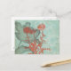Cartão Postal Silhueta de Flores Vermelhas em Fundo Teal