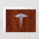 Cartão Postal Símbolo Médico do Caduceu de Prata em Mogno Decora
