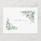 Funeral, bereavement thank you card. Family name and thanks on the back. Personalized funeral thank you. Loss of life. Eucalyptus. Greenery. Simple. Gold Text. Postcard.