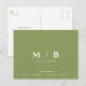 Cartão Postal Simple Moss Green Monogramas Casamento Salva a Dat