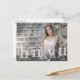 Este design de agradecimento de formatura apresenta uma sobreposição de tipografia em negrito que mostra uma foto do novo graduado. Clique no botão personalizar para mais opções de modificação do texto na frente e no verso e/ou da foto! Variações deste design, bem como produtos coordenados, estão disponíveis em nossa loja, zazzle.com/store/doodlelulu. Entre em contato conosco se você precisar deste design aplicado a um produto específico para criar seu próprio item exclusivo! Muito obrigada por visualizar um DoodleLulu by 2 june bugs design!