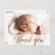Momentos de Ouro: Cartão Postal de Foto de Bebê Personalizado com Escrita Dourada Simples de Agradecimento
