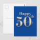 Cartão Postal Simples Moderno Azul Real e Prateado 50º Aniversár