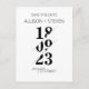 Simples moderno salve a design de data, estilo minimalista. Apropriado para casamentos. Letras criativas e modernas aplicadas. Coloração branca e preta. Personalize o texto.