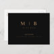 Cartão Postal Simples Monograma Dourado Preto Salvar a Data