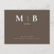 Monograma simples e elegante Salvar a data. Casamento. Contemporâneo. Marrom. Sonolento. Cartão Postal.