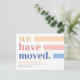 Moderno e simples, movemos o convite em cores pastéis de amarelo, rosa e azul macio com fontes ousadas "movemos". Envie isso para seus amigos e escreva seu novo endereço.
