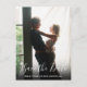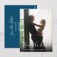 Esta foto moderna de script salve o cartão de data com sua foto especial sobreposta com um script elegante, salve a data acima de seus nomes, data e local em texto branco. O inverso tem detalhes adicionais sobre a data, incluindo o site do seu casamento. Você pode personalizar o fundo para sua cor favorita. Projetado por Thisnotme©