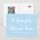 Se você está procurando um cartão postal simples, elegante e bonito para agradecer os clientes por seus negócios ou apoio contínuo, você pode apreciar este Cartão Postal de Agradecimento Empresarial Céu Azul com Letra Simples da Zazzle! Este cartão postal elegante oferece um código QR e texto que podem ser facilmente personalizados para atender às suas necessidades de serviço ao cliente. Disponível em tipos de papel mate ou semi-brilho. Vendido com ou sem envelopes, por cartão ou em quantidades de 2 a 2000. Levemente pautado e carimbado com um coração na parte de trás para um toque de amor e a conveniência de escrever seu endereço. Ideal para presentear durante interações diárias com os clientes, acompanhar pedidos ou dar em festas ou eventos especiais. Economize ao comprar mais - sem mínimos! Garantia de satisfação de 100%.