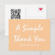 Se você está procurando um cartão postal simples, elegante e bonito para agradecer os clientes por seus negócios ou apoio contínuo, você pode apreciar este Cartão Postal de Agradecimento Empresarial Simple Script Peach da Zazzle! Este cartão postal elegante oferece um código QR e texto que podem ser facilmente personalizados para atender às suas necessidades de serviço ao cliente. Disponível em tipos de papel mate ou semi-brilho. Vendido com ou sem envelopes, por cartão ou em quantidades de 2 a 2000. Levemente alinhado e carimbado com um coração na parte de trás para um toque de amor e conveniência para escrever seu endereço. Ideal para presentear durante interações diárias com clientes, acompanhando pedidos ou dando em festas ou eventos especiais. Economize ao comprar mais - sem mínimos! Garantia de satisfação de 100%.