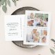 Obrigado de fotos elegante e moderno de casamento, você apresenta seis fotos favoritas (2 grandes, 4 pequenas) com sua saudação e/ou nomes personalizados no centro. Adicione uma mensagem pré-impressa personalizada de obrigados ao verso ou exclua o texto de amostra se usar uma mensagem manuscrita. Ideal para mostrar fotos detalhadas do seu casamento, além de retratos postados.