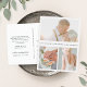 Obrigado elegante e moderno de fotos de casamento você apresenta três fotos favoritas com sua saudação personalizada e/ou nomes centrados em letras minimalistas de música. Adicione uma mensagem pré-impressa personalizada de obrigados ao verso ou exclua o texto de amostra se usar uma mensagem manuscrita.