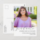 Agradeça à sua família e amigos com estilo com nosso cartão-postal de agradecimento de formatura escolar em casa Simply Elegant Photo! Trazendo um toque sofisticado e atraente, este design impressionante com um belo fundo floral roxo é uma maneira de compartilhar seus agradecimentos pelo papel deles em seu grande marco. Certifique-se de incluir seus detalhes pessoais e, em seguida, use nossa mensagem no verso ou substitua pela sua própria. Procure por peças complementares e mais variações e ideias de formatura em nossa Coleção de Ensino Escolar em Casa ou em nossa Coleção de Formatura