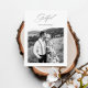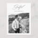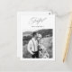 Cartão postal de agradecimento de casamento minimalista moderno em preto e branco apresenta elegante caligrafia grata e uma foto com uma mensagem personalizada de agradecimento e endereço de devolução no verso do simples cartão de agradecimento de recém-casados.