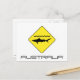 Cartão postal com um sinal de tráfego amarelo com um ícone 'apontador' com o texto: "Austrália"