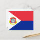 A bandeira de Sint Maarten tem bandas horizontais em vermelho e azul, com uma área triangular branca à esquerda contendo um casaco de braços. Foi adotado em 1985 e tem uma proporção de 2:3. Fonte da imagem: Andrwsc/Wikipedia http://en.wikipedia.org/wiki/File:Flag_of_Sint_Maarten.svg