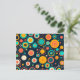 Um padrão vibrante e lúdico composto por círculos sobrepostos em vários tamanhos e cores. Os círculos são organizados de forma aparentemente aleatória, mas harmoniosa, criando uma composição dinâmica e visualmente interessante. A paleta de cores inclui tons de laranja, azul, amarelo e vermelho, colocados sobre um fundo escuro. O efeito global é simultaneamente enérgico e alegre.