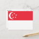 Bandeira de Singapura. A bandeira nacional de Cingapura foi adotada pela primeira vez em 1959, ano em que Cingapura se autogoverna no Império Britânico. Foi reconfirmado como bandeira nacional quando a República ganhou independência em 9 de agosto de 1965. O design é um bicolor horizontal, de cor vermelha acima do branco, sobreposta no cantão (quadrante superior esquerdo) por uma lua de lua branca virada para um pentágono de cinco pequenas estrelas brancas de cinco pontas. Os elementos da bandeira denotam uma jovem nação sobre a ascendente, irmandade universal e igualdade, e os ideais nacionais.