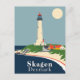 Descubra a cidade pitoresca de Skagen, na Dinamarca, com este cartão-postal retrô mostrando suas praias arenosas, porto charmoso e arquitetura icônica. Famoso por suas paisagens impressionantes onde dois mares se encontram, Skagen tem sido há muito um refúgio tanto para artistas quanto para viajantes.