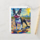 Cartão Postal Skateboard Boston Terrier Diversão Colorida Surrea