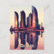 Uma ilustração elegantemente estilizada do viagem, com o desenho icônico de Abu Dhabi, com os seus arranha-céus futuristas a refletirem nas águas calmas do pôr do sol. a arquitetura elegante, curvada e quente cria uma paisagem urbana mesmerante que captura a essência da elegância moderna dos Emirados Árabes Unidos. perfeita para amantes de viagem, entusiastas da arquitetura e aqueles que buscam comemorar a sua visita a este destino luxuoso.