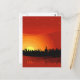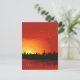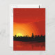 Uma lindíssima linha do horizonte da cidade com um pôr do sol brilhante com laranjas, vermelhos e amarelos, colocando o cais da cidade em um brilho reflexivo na água do porto.