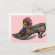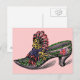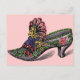 Desenho preto e branco de um calçado vitoriano com miçangas coloridas