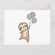 Cartão Postal Sloth Voa Para Cima Com Balões