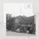 Foto da concessionária de carros dos anos 30 e do Neil Hotel and Dining Room em Londres, Ohio. Uma bela vista urbana com carros antigos. Foto do fotógrafo Ben Shahn.
