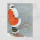 Art Deco vintage illustration of a woman wearing a red fur lined winter coat and hat, standing in the blowing snow with a cluster of snow buntings flying in front of her. Magazine cover illustration by Will Hammell (1914).