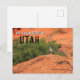 Este cartão postal impressionante de Utah apresenta uma bela foto do Grande Roadrunner tocando no arenito do deserto de laranja no Parque Estadual de Snow Canyon, Utah. Fotografia criada pela fotógrafa Maria Jeffs, prêmio vencedora.