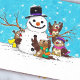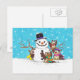 Você quer construir um boneco de neve? Mande este cartão de Natal bonito para desejar aos amigos e à família um Feliz Natal. um grupo de pequenas corujas bonitas está construindo um boneco de neve no inverno. Ideal para o Natal ou não para o inverno Festivo.