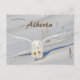 As Corujas de Neve têm, geralmente, cerca de 24 polegadas de comprimento. É facilmente identificado pelas suas penas brancas, cabeça redonda sem ouvido e asas brancas largas. A cor varia entre branco puro e branco barrado com quantidades variáveis de preto e marrom. As fêmeas e os pássaros jovens têm mais barulho do que os machos. Eles migram do Ártico para Alberta e algumas outras províncias no inverno e voltam ao Ártico no verão. No inverno, as Corujas de Neve estão distribuídas por Alberta a leste das Rochosas. É classificada como Segura no Relatório de Estado Geral das Espécies Selvagens de Alberta e, como todas as aves de rapina em Alberta, a Coruja de Neve está protegida pela Lei provincial da Vida Selvagem. Aproveite seu novo cartão-postal Snowy Owl em Alberta Canadá!
