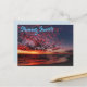 Uma foto do pôr do sol da praia tropical impressionante que as palavras não podem descrever! À medida que este sol espetacular se põe ao longo do horizonte, o céu e as nuvens altocumulus brilham em tons de cor rosa, laranja e vermelho vibrante. As ondas do oceano gentilmente acariciam a praia macia e arenosa nesta noite quente e pacífica nos trópicos. Quando vejo esta foto posso imaginar caminhando na praia com meu cachorro no crepúsculo e deixando todas as minhas preocupações apagarem da minha mente. O que você imagina ao ver esta foto? Mande os trópicos para um amigo hoje com este cartão poste!